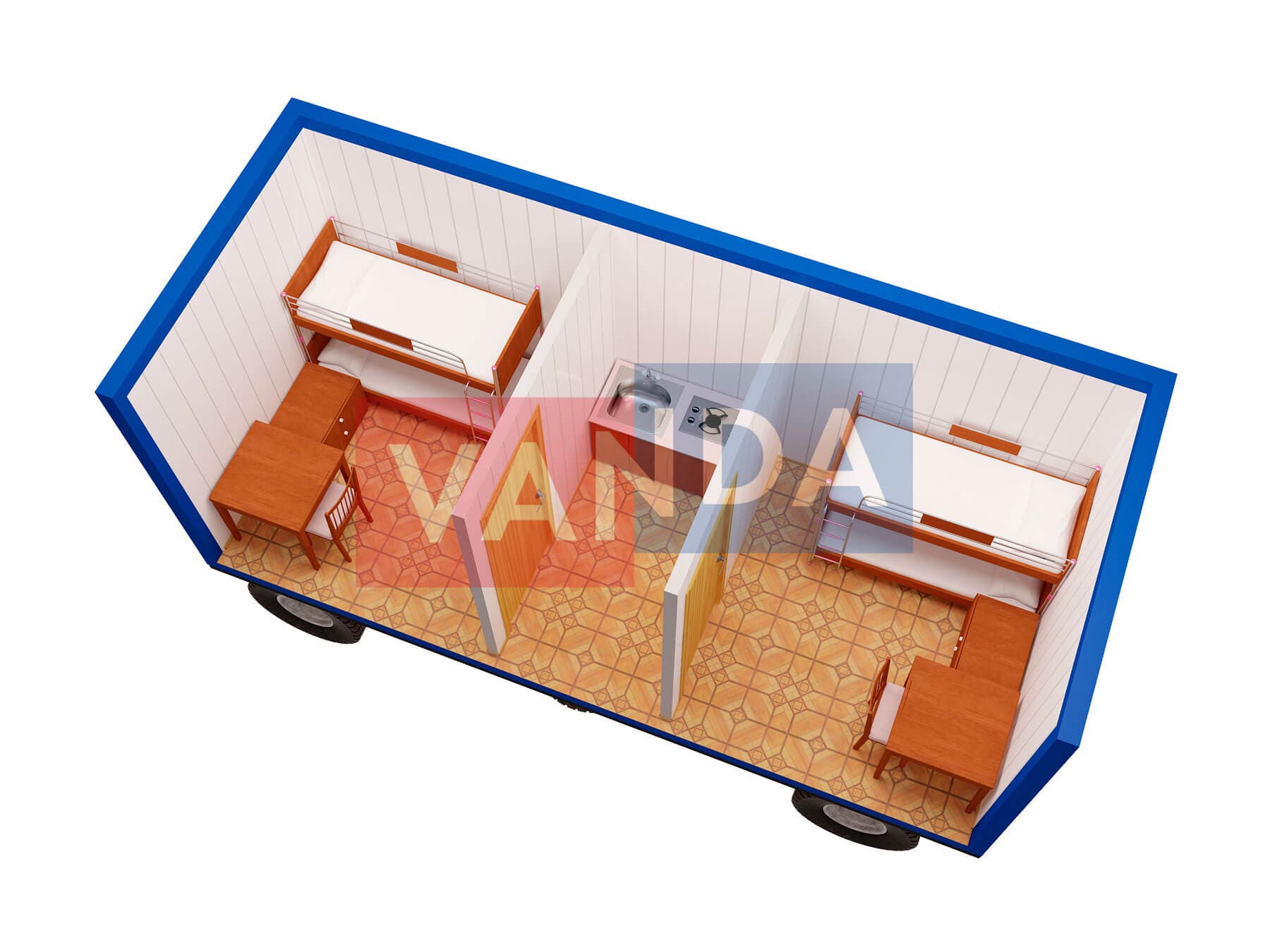 Мы сами изготавливаем прицеп бытовка на шасси 5,85х2,4, общей площадью 14.04 квадратных метров, имеющий наиболее доступную цену в нашем каталоге, и предлагающий широчайшие возможности для модернизаций. Простое решение с минимальными затратами.