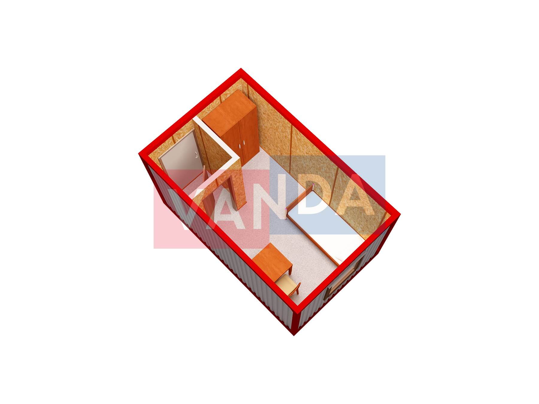 Металлическая бытовка с тамбуром 5,85 x 2,4 - Оргалит ДВП