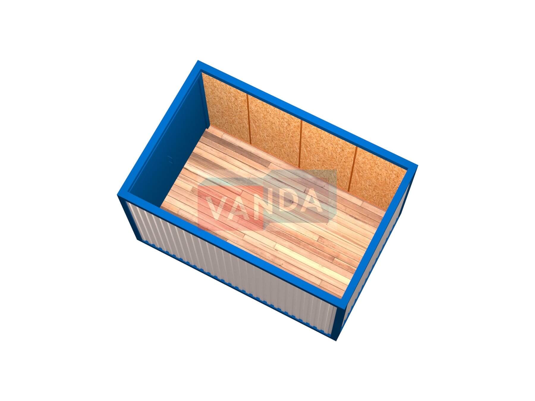 Бытовка под склад № 2 (Вариант 2) изготавливается из несущего каркаса (верхняя и нижняя обвязка): швеллер 100х50х3 мм., угловые стойки: сложно - гнутый угол 90х90х6 мм., крыша блок-контейнера: металл сварной 0,9-1 мм., качественная наружная отделка: оцинкованный профлист, внутренняя отделка стен: Плита OSB 9 мм., внутренняя отделка потолка: Плита OSB 9 мм., вспомогательный деревянный каркас (стены): брусок 40х75 мм., лаги пола: обрезная доска 40х100 мм., лаги потолка: обрезная доска 40х100 мм., выполнено утепление: Минеральная вата «ISOVER» – 50 мм. и пароизоляция: плёнка техническая, черновой пол состоит из: обрезная доска 20 мм. (2 сорт), чистовой пол покрыт: сухая, половая, шпунтованная доска 28 мм., отделка пола выполнена из качественных материалов. Контейнер комплектуется металлическими воротами.