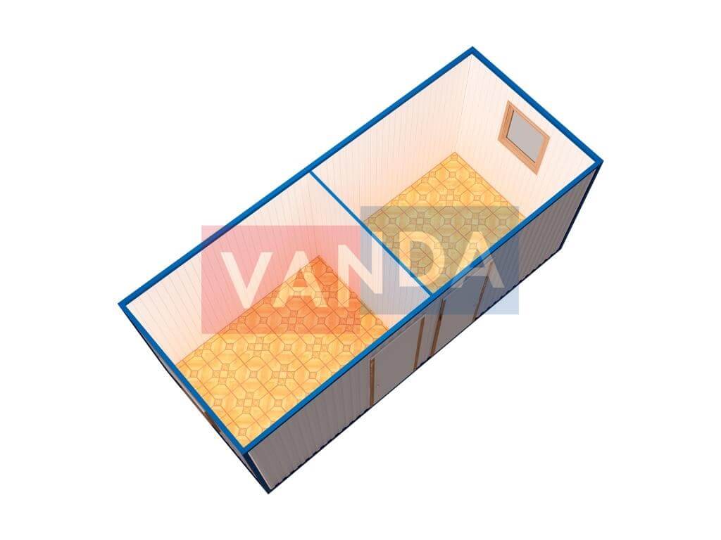 Бытовка металлическая двухкомнатная 6х2,45 изготавливается из несущего каркаса (верхняя и нижняя обвязка): швеллер 60х40х3 мм., угловые стойки: сложно - гнутый угол 63х63х5 мм., крыша блок-контейнера: металл сварной 0,9-1 мм., качественная наружная отделка: оцинкованный профлист, вспомогательный деревянный каркас (стены) выполнен из брусок 40х75 мм., лаги пола: брусок 40х75 мм., лаги потолка: брусок 40х75 мм., выполнено утепление: Минеральная вата «ISOVER» – 50 мм. и пароизоляция: плёнка техническая, черновой пол состоит из: обрезная доска 20 мм. (2 сорт), чистовой пол покрыт: ДСП строительное 16 мм., отделка пола выполнена из качественных материалов. Контейнер комплектуется окнами: деревянное, двойное остекление 800х1000, входной дверью: ДГ 21-8 обшита снаружи оцинкованным листом, врезной замок и внутренними дверями. Если в БК присутствуют перегородки, то для них используется: брусок 40х50 мм.