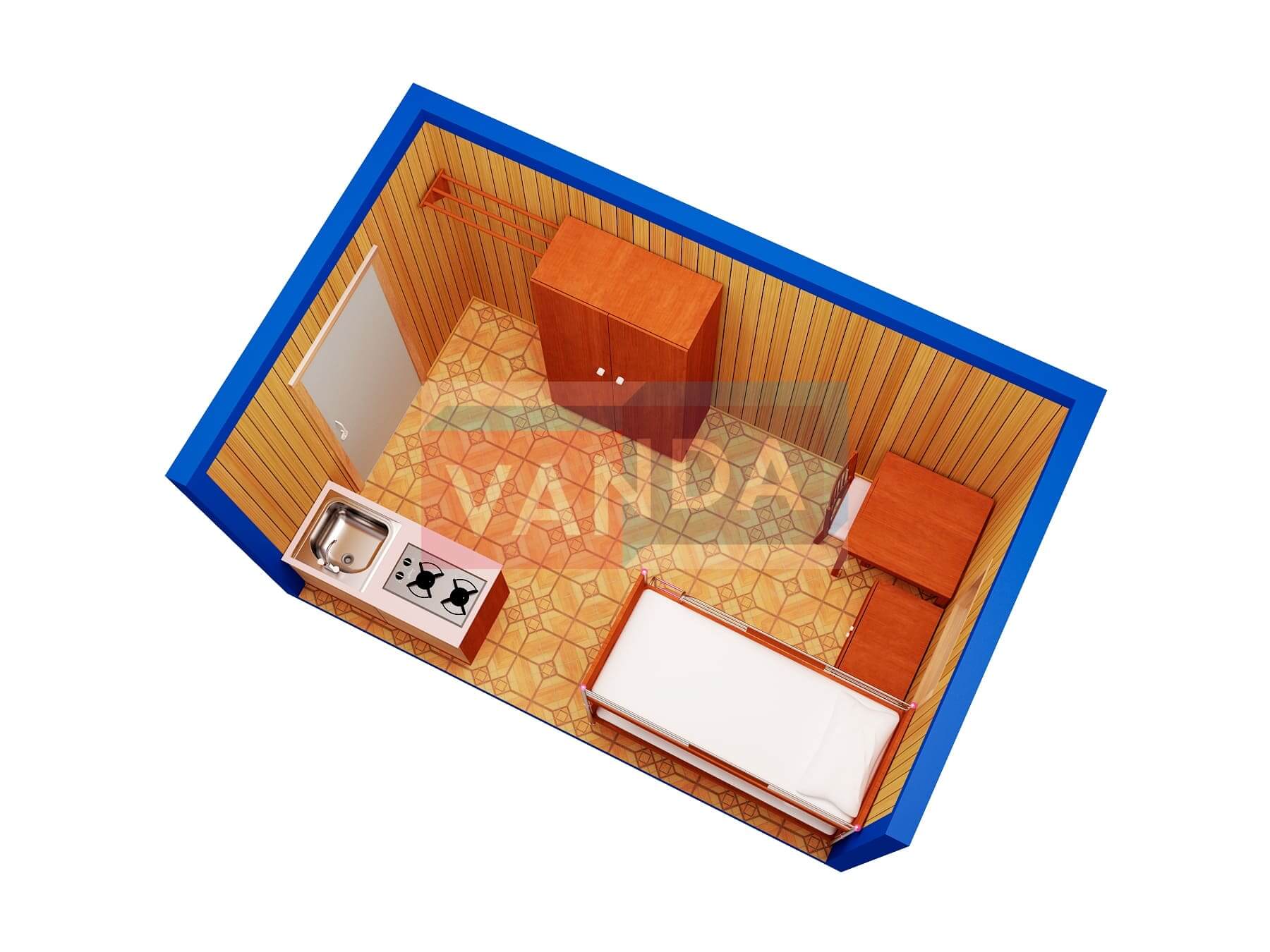Металлическая бытовка распашонка 5,85 x 2,4 - Оргалит ДВП