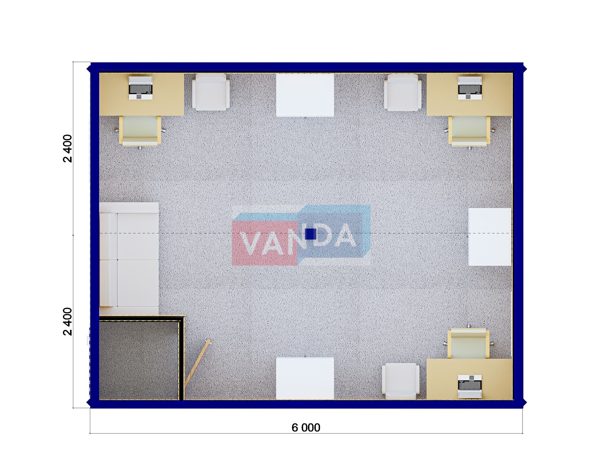• Габаритные размеры - стандартные размеры одного модульного здания (наружные): Длина: 6 м. Ширина: 2,4 м. Высота: 2,5 м.